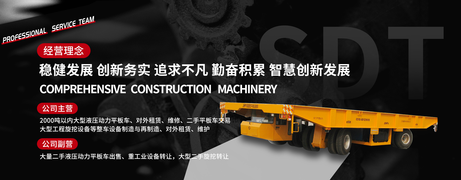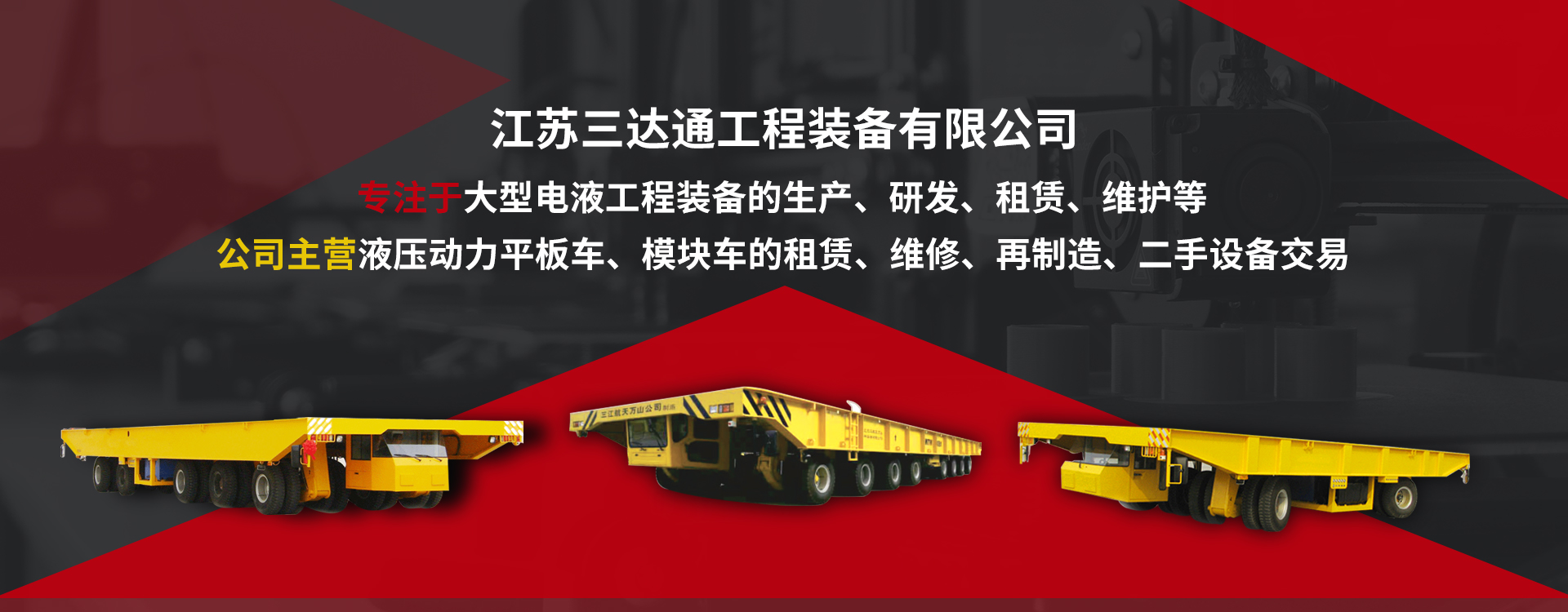 江蘇三達通工程裝備有限公司專注于大型電液工程裝備的生產、研發、租賃、維護等,因業務發展需要,由原南通市迎奧機電設備有限公司的業務基礎上,為了能更加專業的服務各類重工企業,特在南通新注冊該公司。公司主營大型電液控制設備:2000噸以內大型液壓動力平板車、大型工程旋挖設備等整車設備制造與再制造、對外租賃、維護。 公司宗旨秉承“穩健發展、創新務實、追求不凡、勤奮積累、智慧創新發展”的經營理念。充分利用公司在機械制造、礦產冶金、交通建設、環保節能等行業的信息和資源優勢,致力于為設備需求方提供優良的個性化工程機械租賃服務,成為能為客戶提供綜合工程機械優異的企業。